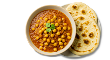 traditional indian gujarati or panjabi food dish chickpeas masala curry known in india as chole masala,chana masala curry,Chole bhature subji stew recipe with naan,cutout in transparent background,png