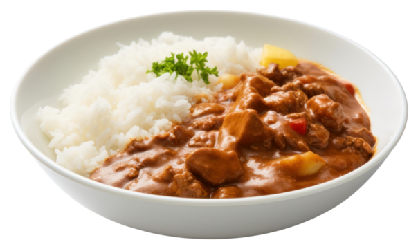 Transparent vector art of golden dumplings in vibrant orange gravy