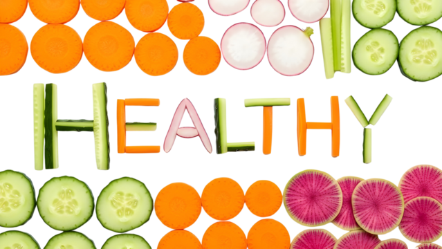 Colorful sliced fruit and vegetables illustration on transparent background