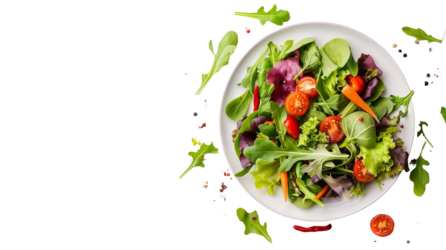 Fresh salad. Mixed falling vegetables in bowl on transparent background