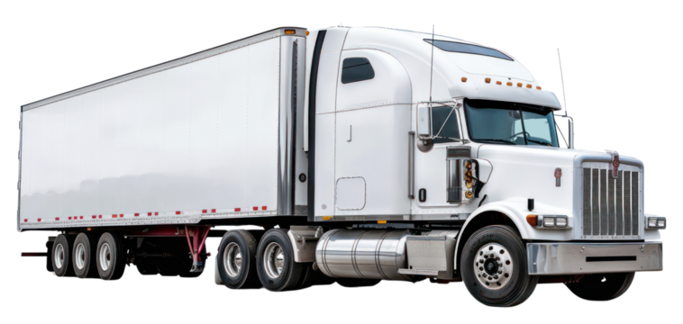 PNG 18 wheel truck hauling cargo bay vehicle white background transportation.