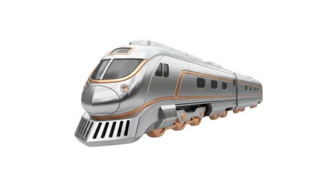 Sleek silver futuristic starship with glowing blue engines and detailed paneling, isolated on a white or transparent background, cutout, PNG