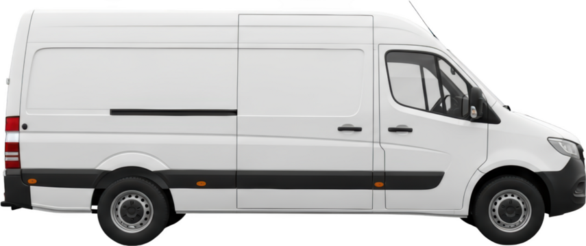 White panel van with sliding door black trim modern design side profile studio shot Commercial Vehicle transparent background