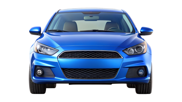 Sleek blue sedan car rear view isolated PNG, modern vehicle design with stylish taillights and exhaust system for automotive concepts