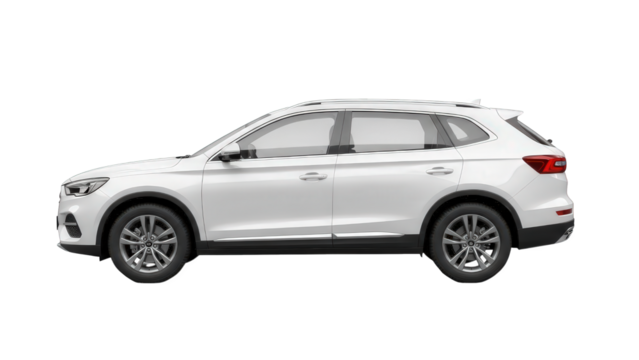 Contemporary white suv side view, elegant new vehicle design studio isolated on transparent background