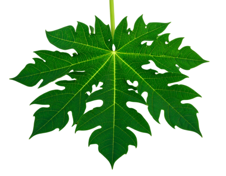 A vibrant green, heart-shaped tropical leaf against a stark black background