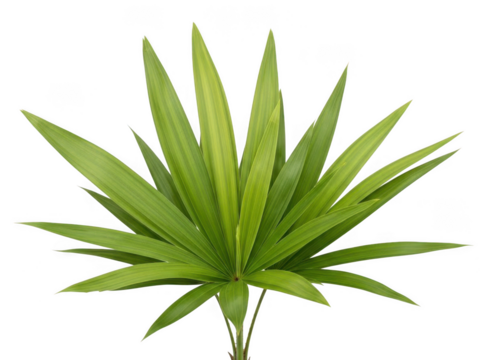 Vibrant green palm leaf against white background