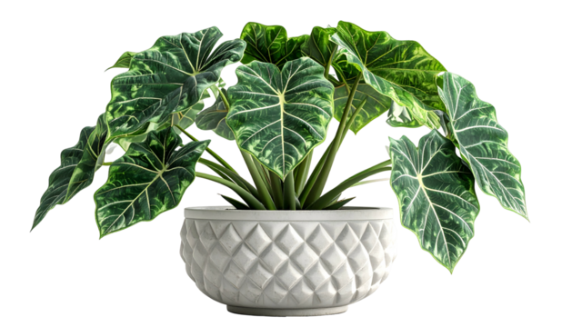 Close-up of bright green Calathea lutea leaf shows distinct veins and texture on a white background