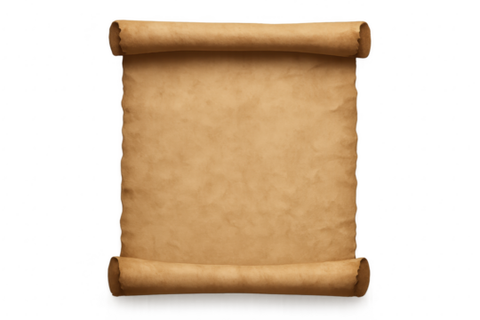 A rolled up parchment on transparent background for ancient or historical concepts