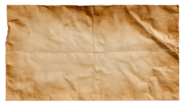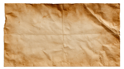 Old brown paper background with a distinctive crumpled texture, natural folds, and darkened distressed edges, perfect for vintage graphic projects, scrapbooking, and historical document uses