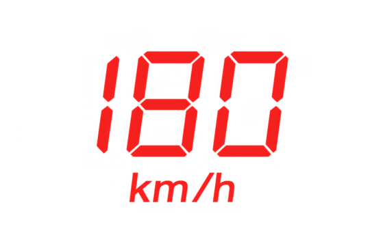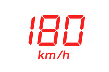 Digital speedometer showing 180 km/h, indicating high speed or fast velocity on a transparent background
