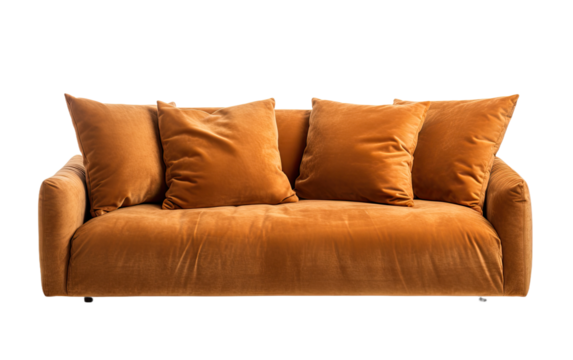 velveteen sofa with cushion on a White or Clear Surface PNG Transparent Background.