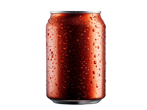 A chilled soda can glistening with condensation, perfect for refreshing moments on a hot day.