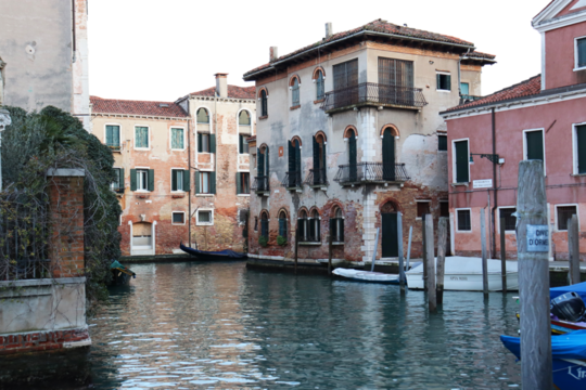 Colorful houses near water in the old medieval street in Venice isolated PNG photo with transparent background. High quality cut out scene element. Realistic image overlay