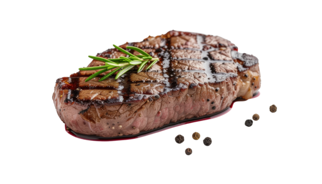 A succulent grilled venison steak with a red wine and juniper reduction, isolated on white background for a gour Png1