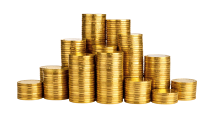 Golden coins stacked high symbolizing financial success, savings, and investment growth for your business venture