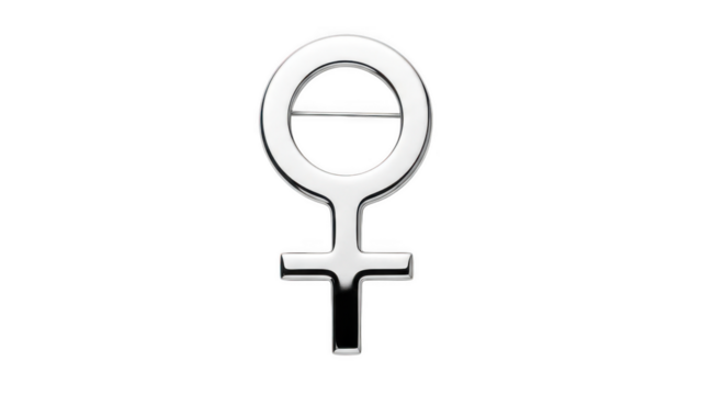 Shiny silver female gender symbol isolated PNG on transparent background, feminism and women s rights concept for graphic design