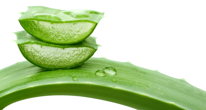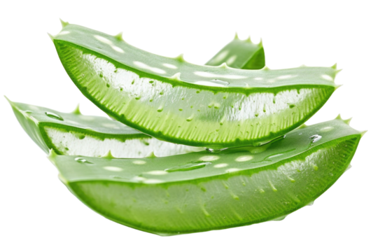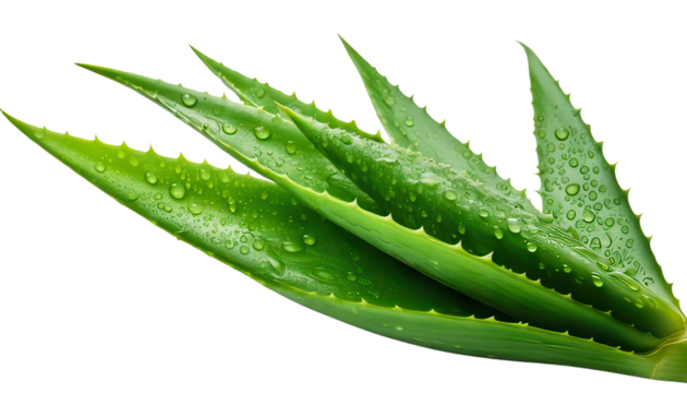 Fresh aloe vera leaves with water droplets on a white isolated background transparent