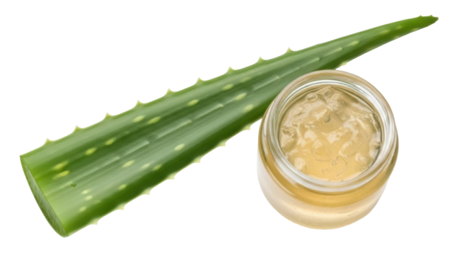Organic green fresh aloe vera transparent gel isolated on transparent background