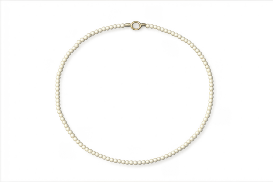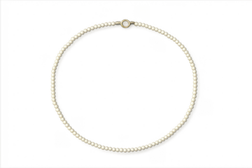 White pearl necklace with gold clasp on transparent background