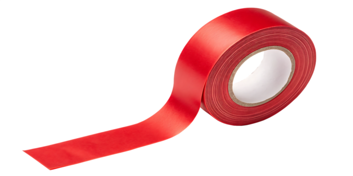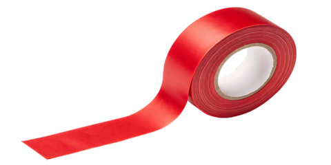Red Vinyl Electrical Tape Roll: A roll of bright red vinyl electrical tape is displayed, partially unwound, showcasing its vibrant color and adhesive properties.