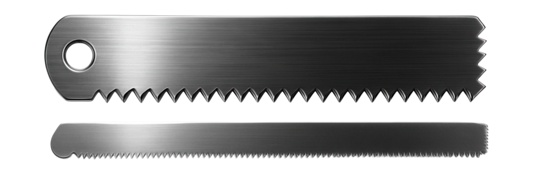 Dual-sided hacksaw blade with coarse and fine teeth for versatile DIY projects.