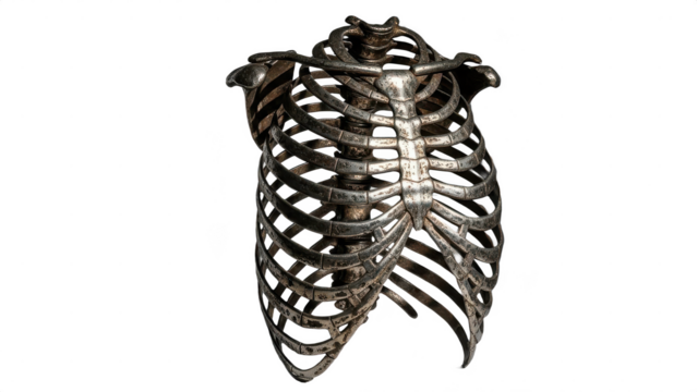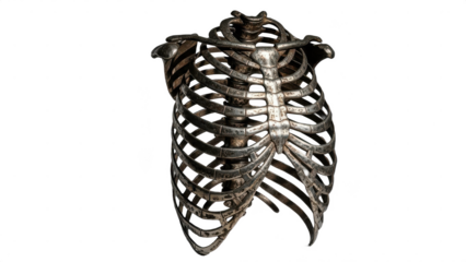 Skeleton's rib cage is shown in a white background. isolated illustration on transparent background