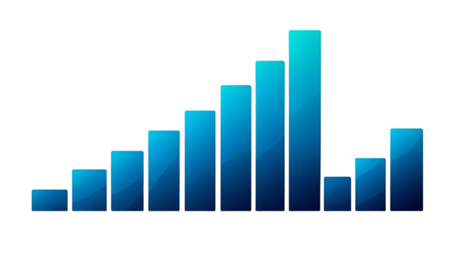 Blue financial bar graph illustration on transparent background