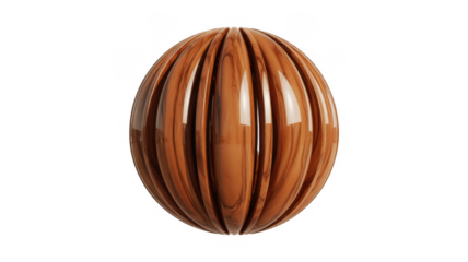 Brown glossy sphere with vertical lines isolated on a transparent background