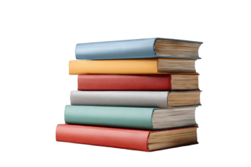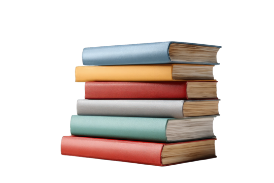 Colorful books on transparent background for educational and reading concepts