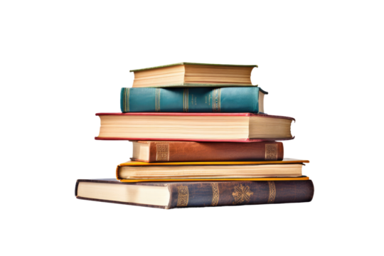 Stack of Books on Table. On a White or Clear Surface PNG Transparent Background..