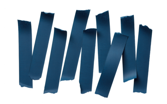 Abstract arrangement of dark blue rectangular shapes with textured brushstrokes against a black background