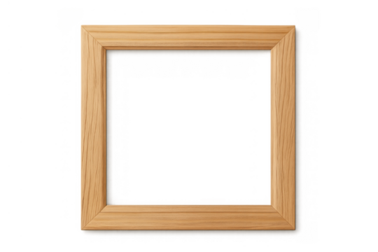Wooden frame creating a blank square border for pictures, artwork, or text; isolated on a transparent background