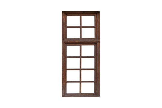 A set of vertical vintage windows with ornate wooden frames displayed against a light background. Each window showcases unique classical architectural details.