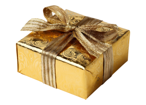 Vibrant gift box with golden ribbon on transparent background