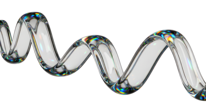 Transparent Wavy Glass Tube with Iridescent Edges on White.
