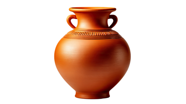 Terracotta Amphora: This image features a detailed view of a terracotta amphora, a vessel of historical and artistic significance, showcasing its classical design.