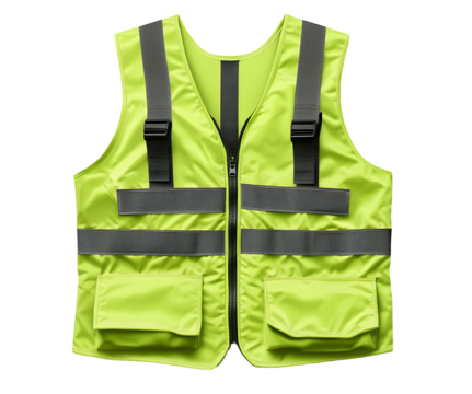 Isolated neon yellow safety vest with reflective stripes for construction worker gear