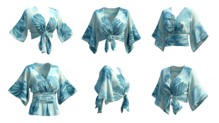Elegant assortment of four distinct traditional garments showcasing a variety of intricate blue and white patterns on comfortable flowing fabric for ceremonial or casual wear.
