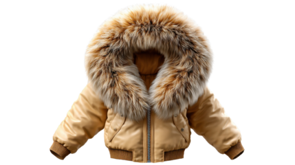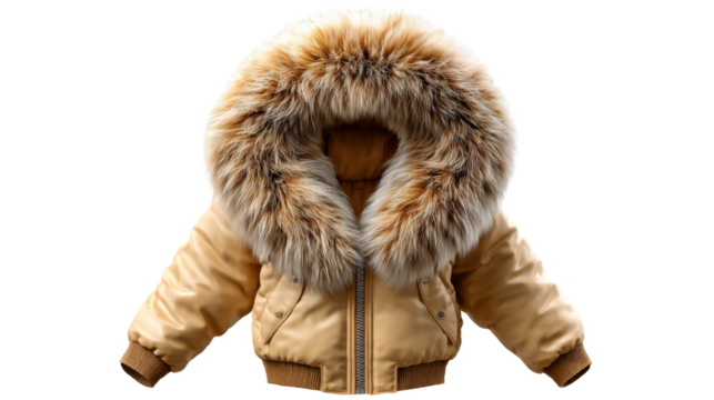 Warm Winter Vestment: An eye-level shot showcasing a fashionable winter vestment with a luxurious fur-trimmed hood, radiating warmth and style.