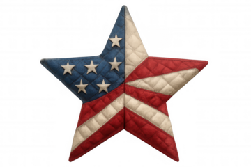 Patriotic star-shaped american flag banner hanging, symbolizing national pride with transparent backdrop