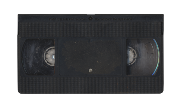 VHS old cassette front side, isolated video tape with clear area for mockup on transparent background in retro Y2K style
