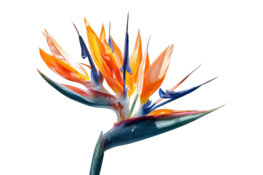 Tropical bird of paradise blossom displayed in vibrant colors on transparent background