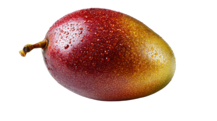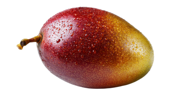 Mango fruit covered in water drops, showcasing its fresh, healthy, and juicy tropical appeal and vibrant colors