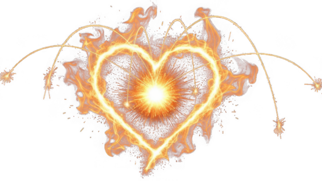 Vibrant mosaic heart with artistic petals on transparent background