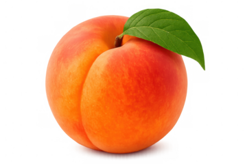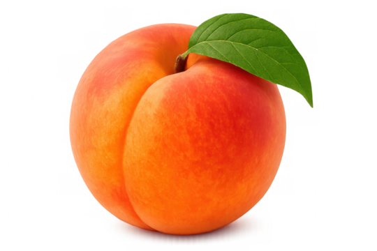 Ripe peach with verdant leaf, showcasing natural sweetness against transparent backdrop, ideal for culinary graphics