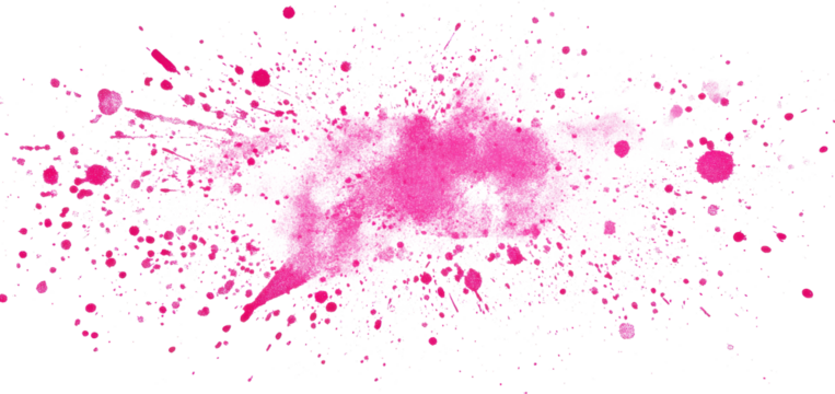 Vibrant abstract pink ink splatter with halftone dots creating a striking visual texture
