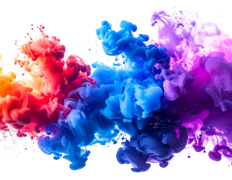 Abstract explosion of vibrant pink smoke or ink in water, isolated on transparent background