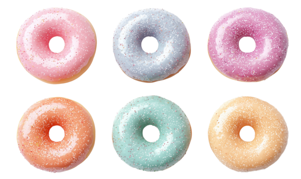 Six Pastel Donuts Sprinkles Sweet Treats Bakery Food Dessert, Transparent Background, Ai Generative Images