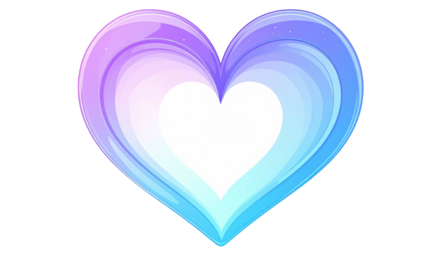 Luminous heart shape with gradient layers in blue, purple, and white, isolated against a black background